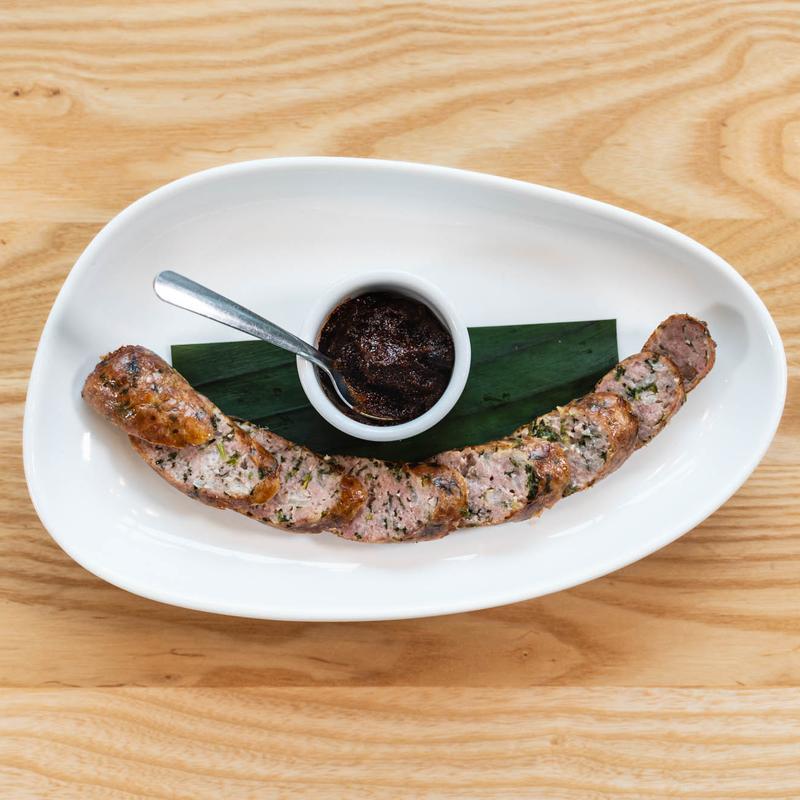 Lemongrass, Herbs, Garlic, Shallots, Makrut Lime Leaves, offered with Jeow Bong